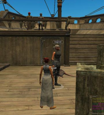 短い航海が終わり、島に到着した。 殺風景な船着き場だ。 住人と話をしながら、町の周りを見物してみる。 到着してから話をしているだけで、レベル 3に(笑) |