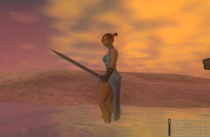 夕暮れの中で。 DAoCは綺麗だったが、EQ2はそれを上回るクオリティーだと思う。 雑魚モンスターも微妙な個体差があったりして、全体的な質は高め。 ビデオカードのパワーを上げて、最高画質で遊んでみたいものだ。 |