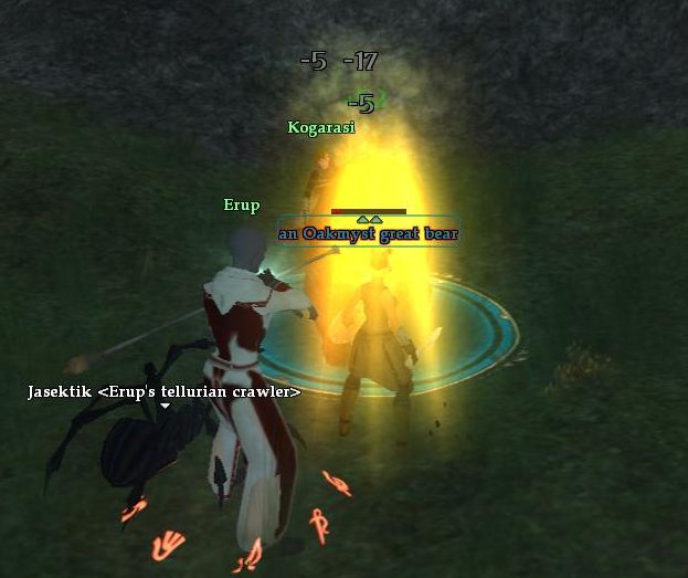 Qeynos に渡った時の装備は、とにかくショボイ。 さらに全装備スロットが埋まっていない。 なのでクエストをこなして装備品を整える。 ソロで狩る時が多いが、時には即席でグループを作って退治。 Blueとはいえ、▲▲な熊は1人では勝てない。 誘えばすぐに手伝ってくれる、優しい人たちに乾杯♪ |