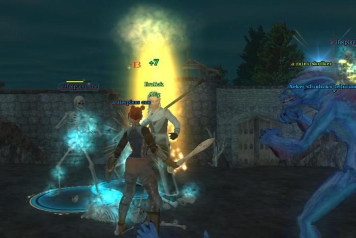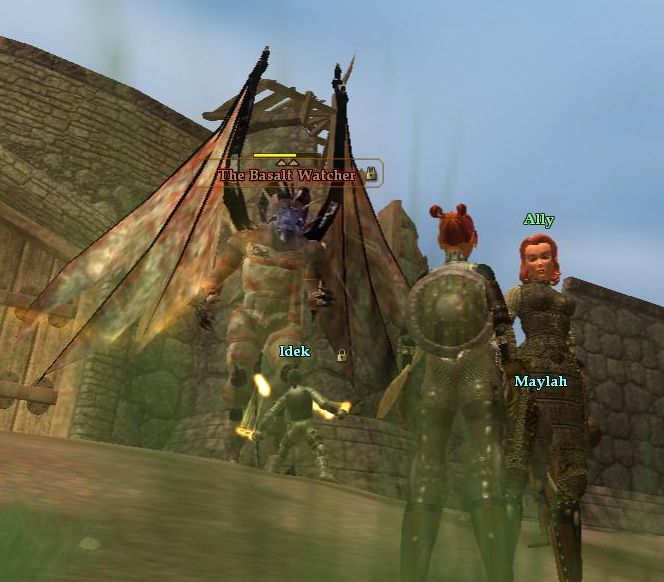 近くの廃墟にてグループに入れて貰う。 壁、回復、魔法の3人組。 とにかく多すぎる Aggro に閉口しつつも撃破していく。 どんどん Add する戦いは、緊張感がたまらない。 |