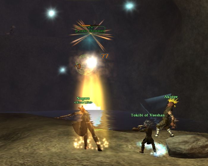 蛇の場合、低いのと地形の高低差からか地面に埋まる事もある。 そうなるとタゲが困難。倒すのが難しい。 Tabを押したり、F8を押してなんとかタゲる。 確実なのは、殴られてる人がタゲを取り、 アシストして倒す事かな。 |