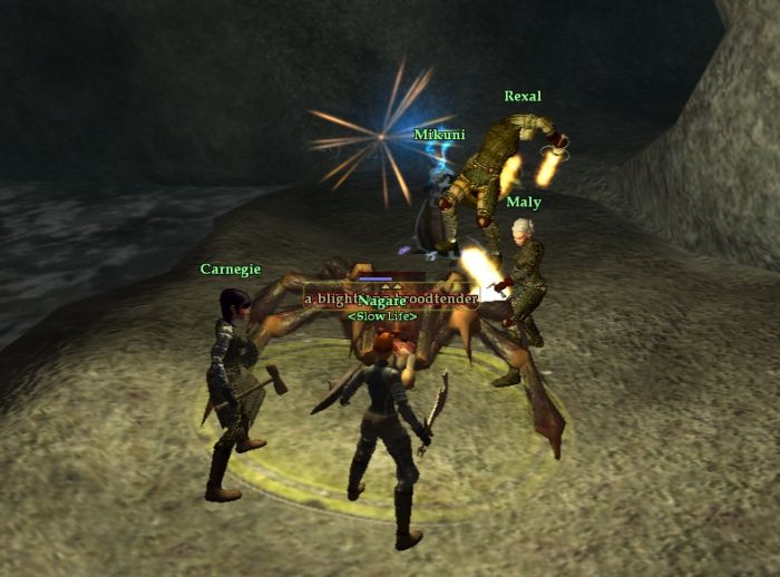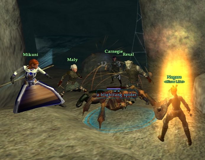 Qeynos 側で育ったからには、BlackBurrowで遊ばないとね。 と言う事で、集中的に行ってきました。 (半分以上は流れだけどね) 名物?のTrainは健在と楽しめる部分は多い(笑) 初めはやけに広いと感じたけど、構造を理解すれば結構狭いかも。 EQ2 はプレイヤーキャラが強いのか、なかなか死なない。 というか、EQ1で良くあった瞬殺というのがあまりない。 あと、今回の話では3回 BB に来てるんだけど、 それぞれ 3人、5人、3人と中途半端な人数。 個人的には中途半端な人数で遊ぶのも大歓迎。 少ないと1人にかかる責任が増えるのでやりがいがある感じ。 連携が楽しく、達成感も大きい。 このダンジョン内にもいくつかクエストが潜んでいる。 アイテムから始まる物が多い。 例えば、鍵のクエストは、これが使える宝箱を探せって話。 マウスに反応する宝箱を探し回って、ブーツを盗みました(笑) 残念なのは、gnoll言語のクエストを終われなかった事。 宝箱からのDropを集めるクエストなので、レベルが高いと達成不可能。 (宝箱はCon Green以上の敵からしか出ないため。それでも、入手する方法が無くもないが) 楽しめる要素が沢山あって、なかなか凝ったゲームに仕上がってるなと思う。 |