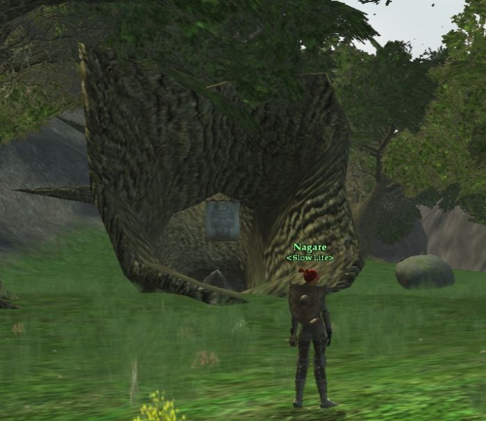 ここが南側にある裏口。 大きな木の中に、ドアが設置してあります。 ちなみに、もう1つの入り口は自分で探してみてください。 ヒントは"潜る"です。 |