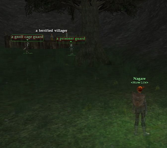 そして、本試験は村人の救出。 Crusader試験と同じく、任務が最優先だ。 リンクした敵を何体か倒して村人を発見。 Qeynos 側は、何かとgnollに縁がある感じだ。 |