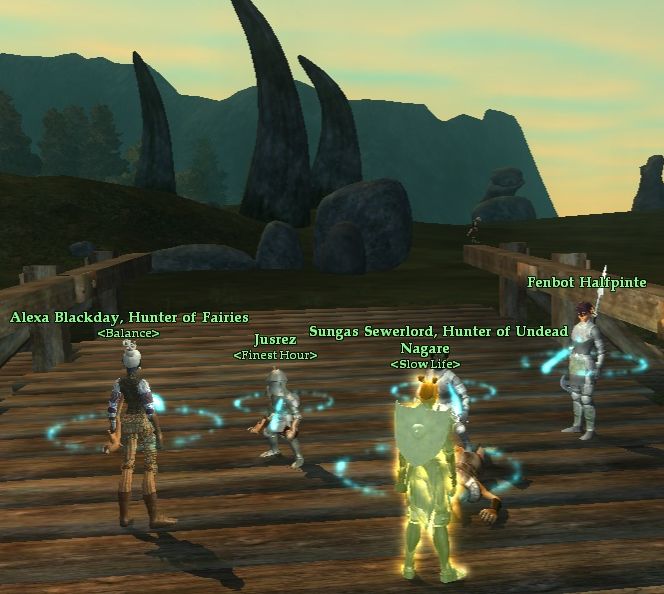 奥の橋で、Giant と Gnoll を狩る。 ここで、Giant関係のクエストは全Complete. Taunt が通る前に Encに敵が飛んで事故があったが 安定した狩りが出来た。 Bard & Enc のコンビのおかげか Powが全然減らなかった。 効率狩りするための必須クラスか? |