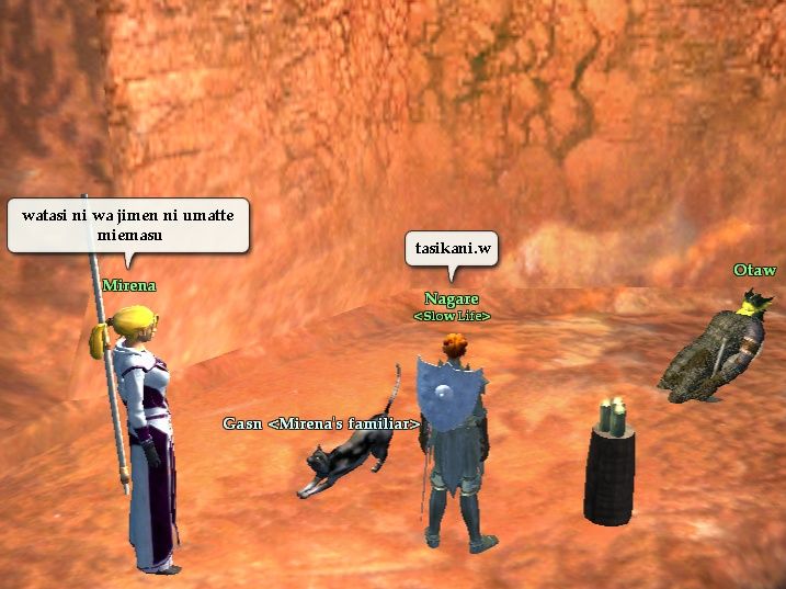 ここの通路の敵はリポップが早く、 ある程度の殲滅速度が要求される。 ここでも、どうしようか?なんて立ち話をしてるとポップ。 そしてAddして半壊…。CR後に解散となった。 解散時に通路でGateしたらリポップして Yazuki 死亡。 (最後にCoQをキャストしたんだけど微妙な差で見えず) 次からは10秒以上遅らせてCastする事にしよう。 |