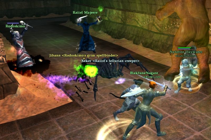 Summoner の 共演(珍しく揃った) 蜘蛛を操る Conjurer と、死霊を操るNecromancer ペットのレベルは主人と同じレベルの様だ。 ソロが強そうな印象を受けるが、弱く不遇なClassらしい。 |