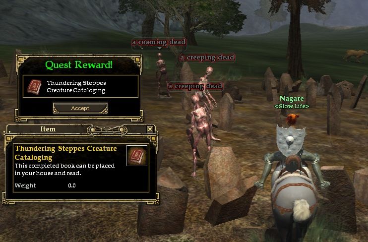 数度襲われつつ、TS の Catalogクエスト終了 報酬は、家に置ける本でした。(いらね〜w) 既に購入してた RoVのカタログをクエストごと破棄w 計画してた Antonica Catalog は中止。 ( AntonicaCatalog は SouthQeynosの Marchantで売ってる) |