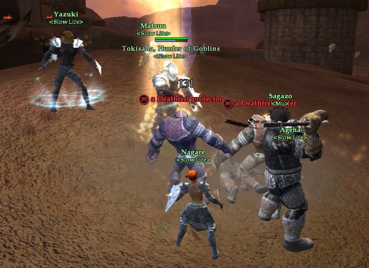 Orc 300殺のクエストを取りに Zek城前へ。 全員から見ても赤い敵グループを倒しながら進む。 相性はあると思うけど、赤い敵を倒せるのは凄い。 とはいえ、効率は良くないのでクエストを取ったら そのまま戻って黄の Orcを狩りました。 |