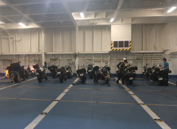 就航1周年ということで、まだ建物が新しい。 乗り込み時間になったのでバイクへ移動する。