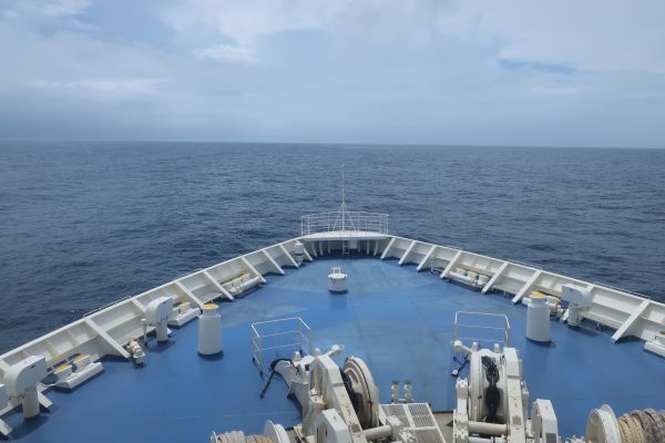 飲んだ後、デッキに出るとちょうど陸から離れるところだった。