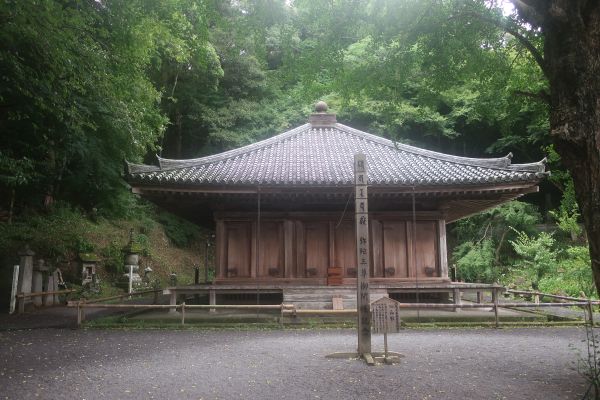 雨のため、大堂の扉が閉まってた。(中にある絵画や阿弥陀如来は重要文化財) 雨天だと見れないのは調べたときに知ってた、天気なので仕方ない。 山間部の県道を走って南下、ここも空いてて走りやすい。