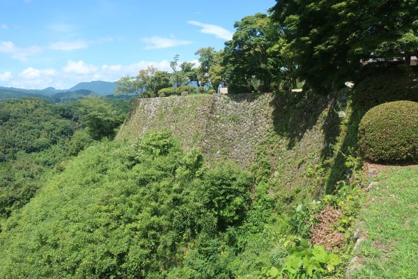 滝は迫力あるんだけど、涼しくない。 観光客のマスク率が低い。 次は岡城跡へ。 Googleナビで裏道から向かうが、あまり使われてない道らしく 天守台の近くにある駐車場に到着した。
