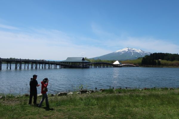 鶴の舞橋は、ヒバで作った贅沢な木の橋。