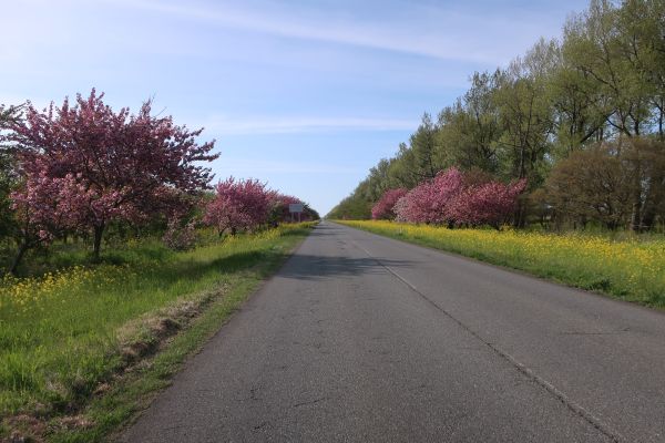 桜並木と菜の花ロードへ、シーズン終わりかけって感じ。