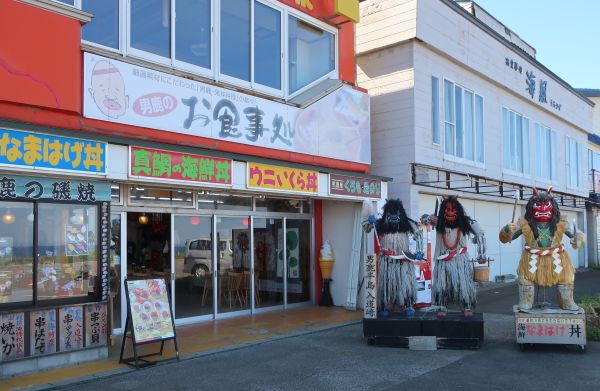 古い方は木の釘で留めてあるんだけど、新しい方は木ネジ。 予算削減のための木ネジだろうと予測。 県道と広域農道を使って北上、鰺ヶ沢に向かう。 肌寒いのでウインドブレーカー着用、天気は良いけど風が冷たい。 11時半に昼も近いし、11年前に行った割烹水天閣に行ってみると 前回も食べたイカ焼きの店、めめちゃんの店。