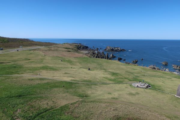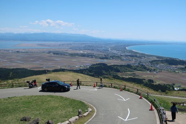 男鹿半島の海岸線の道、先端近くは空いてて良い。 前にも来た八望台、展望台が新設されてる様に見える。