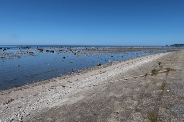 道の駅でつまみを購入後、隣のセブンイレブンで朝食を調達。 19時過ぎに、夕飯を検討する。 最後まで見て0時半、温泉に入って寝た。 --------- 駐輪 :ホテルのエントランス近く(屋根あり) 走行距離 231km ---------- 7時半ごろ、部屋の空調が止まって蒸し暑さで起きる朝。 セブンイレブンで朝食、BLTサンドとコーヒーを。 入道崎に到着、雰囲気からすぐに再訪だとわかった。