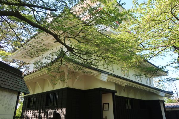 山を降りると暑さ復活、高速を使って酒田へ移動する。 12時過ぎに鶴ヶ岡城に到着、駐車場が遠い。