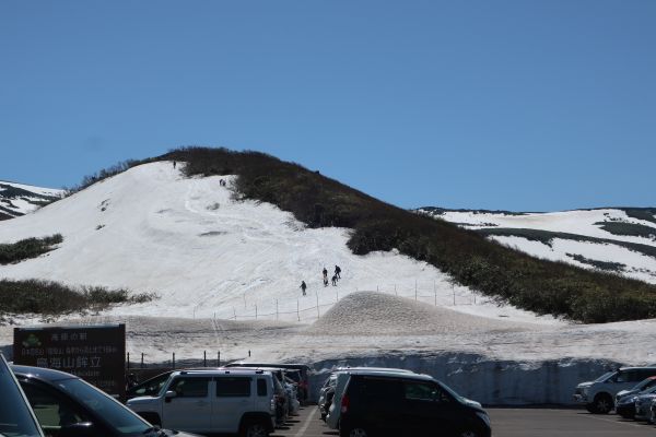 途中までは快走路なんだけど、中盤はヘアピン多すぎ。 山の上部は雪の壁になって、酸ヶ湯みたい。もちろん寒い。