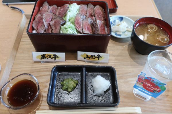 次は村上城に寄って、磐越で帰る予定だったが 鶴岡ICから高速、山形自動車道へ。 最初のSA、寒河江で昼食にする。
