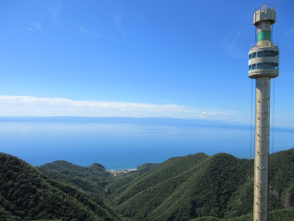 回りながら上がるのは、瀬戸大橋タワー以来だろうか。 海側を見ると、佐渡島が近い。というかデカいのが実感できる。