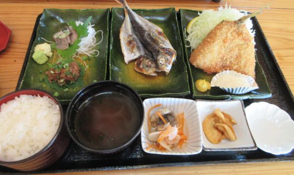 刺身とアジフライが美味しかった。 昼食後は、いつもの展望台へ。
