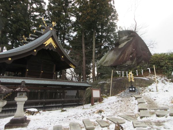 城跡の北部にある櫻山神社へ。 神社の裏にある烏帽子岩が大きい。