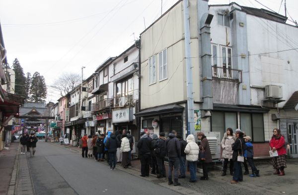 下曲輪跡にある商店街、じゃじゃ麺屋30人ぐらい並んでる