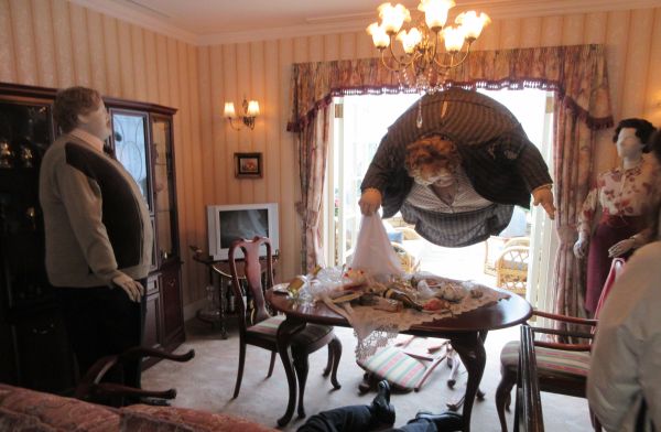 映画のメイキング資料や、セットの展示、小道具や大道具の展示をしている。