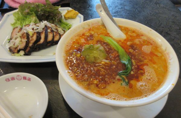 1時半前に住吉飯店に到着、予約簿に名前を書いた直後に昼の部終了だった。 ここで色々と食べてきたけど、今回は担担麵を食べたかった。 迷って、担担麺・焼豚・春巻を注文した。