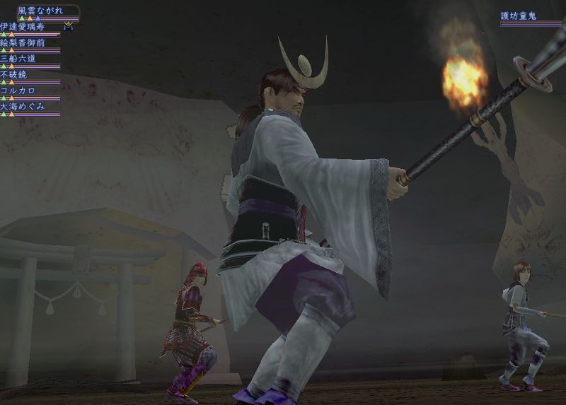 クエストの童鬼退治。 何度もやってるので楽勝モード。 背景に鳥居があるのが珍しい。 |