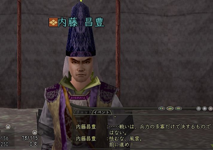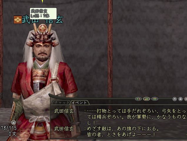 最後はお館様 こと武田信玄 烈風伝では未だ敗走無しだが、今回の陣ではわからない。 (浅井徒党に討ち取られた事を忘れてた・・・ 11/29追記) 第一次木曽川戦に比べると、武田はホントに精鋭揃いになった。 取り付き上手い人がかなり増えてるし、情報も良く回っている。 ときの声って「ぎ〜〜〜〜」かな?w |