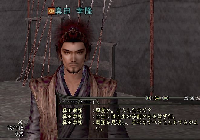 奉行唯一の本陣であり、人気も高い真田幸隆 お館様を守る最後の砦だが、狙われるだけに落ちる率は高め。 周りを見て自分の役目を果たせとは、良いことを言う。 自己中が多いと、共同作業である合戦は成り立たないのだから。 |